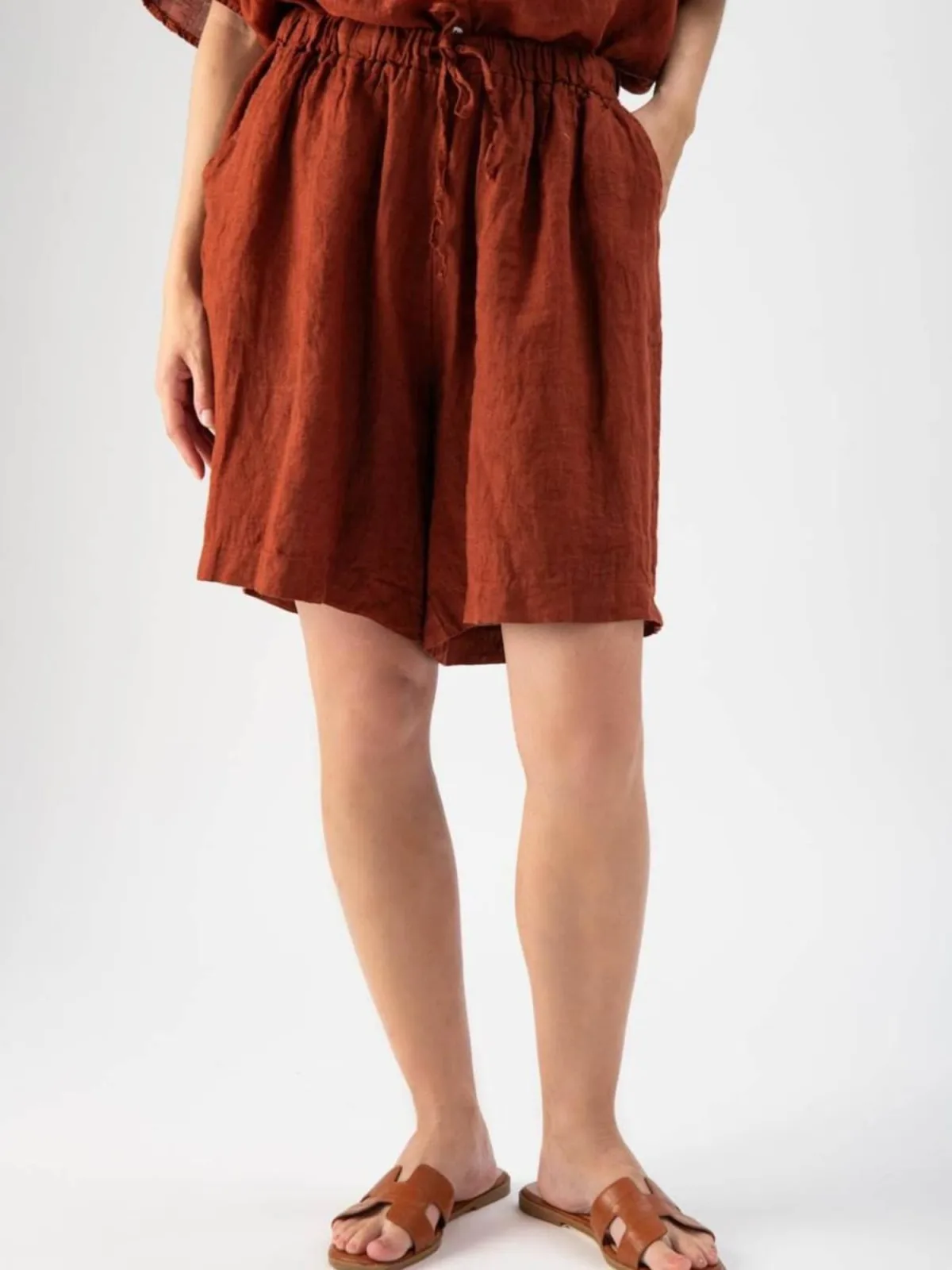 MND Broek ‘Linen shorts with drawstring’ rood gemêleerd