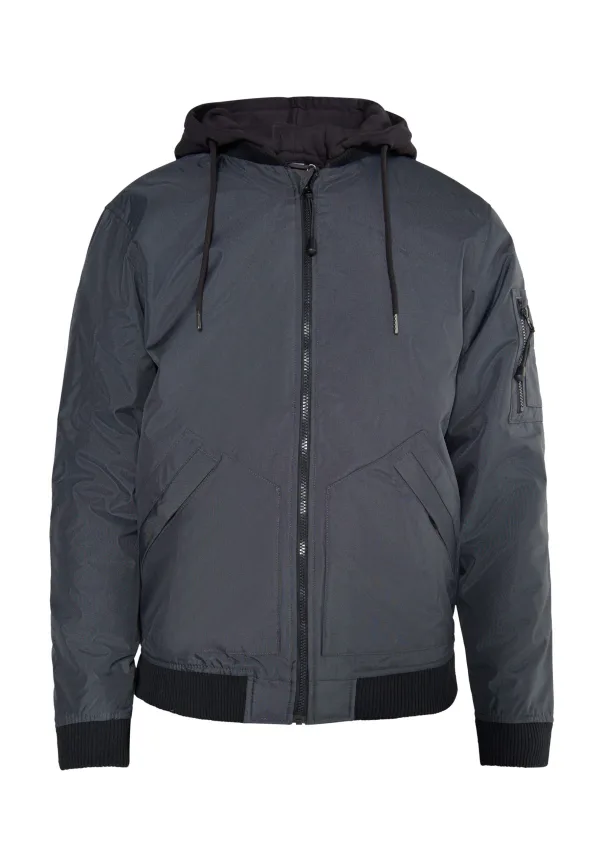 Het licht gewatteerde bomberjack van Mo overtuigt door zijn casual streetstyle. Het heeft een comfortabele pasvorm en een gecoat materiaal, waardoor het een waterafstotende, weerbestendige metgezel is. De geïntegreerde capuchon ziet er visueel cool uit en dient als betrouwbare bescherming tegen koud winterweer. Een zak met ritssluiting op de bovenarm, een geborduurd schedellogo op borsthoogte en de geribde manchetten ronden het casual ontwerp af. Jas