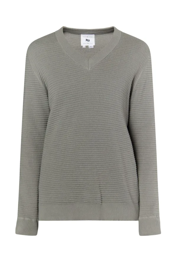 Modern favoriet kledingstuk voor het volgende seizoen: de casual trui van Mo overtuigt door de casual look van puur katoen en het grofgebreide design. Ook de laatste gebreide manchetten en de V-hals zorgen voor stoere accenten. Gebreide trui