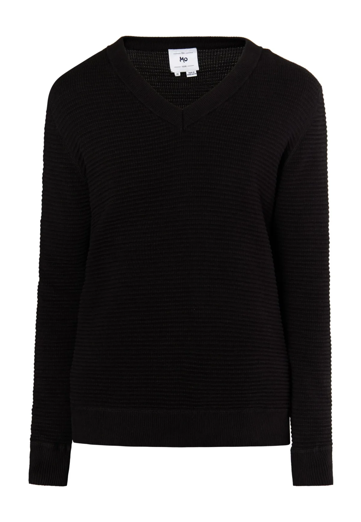 Modern favoriet kledingstuk voor het volgende seizoen: de casual trui van Mo overtuigt door de casual look van puur katoen en het grofgebreide design. Ook de laatste gebreide manchetten en de V-hals zorgen voor stoere accenten. Gebreide trui