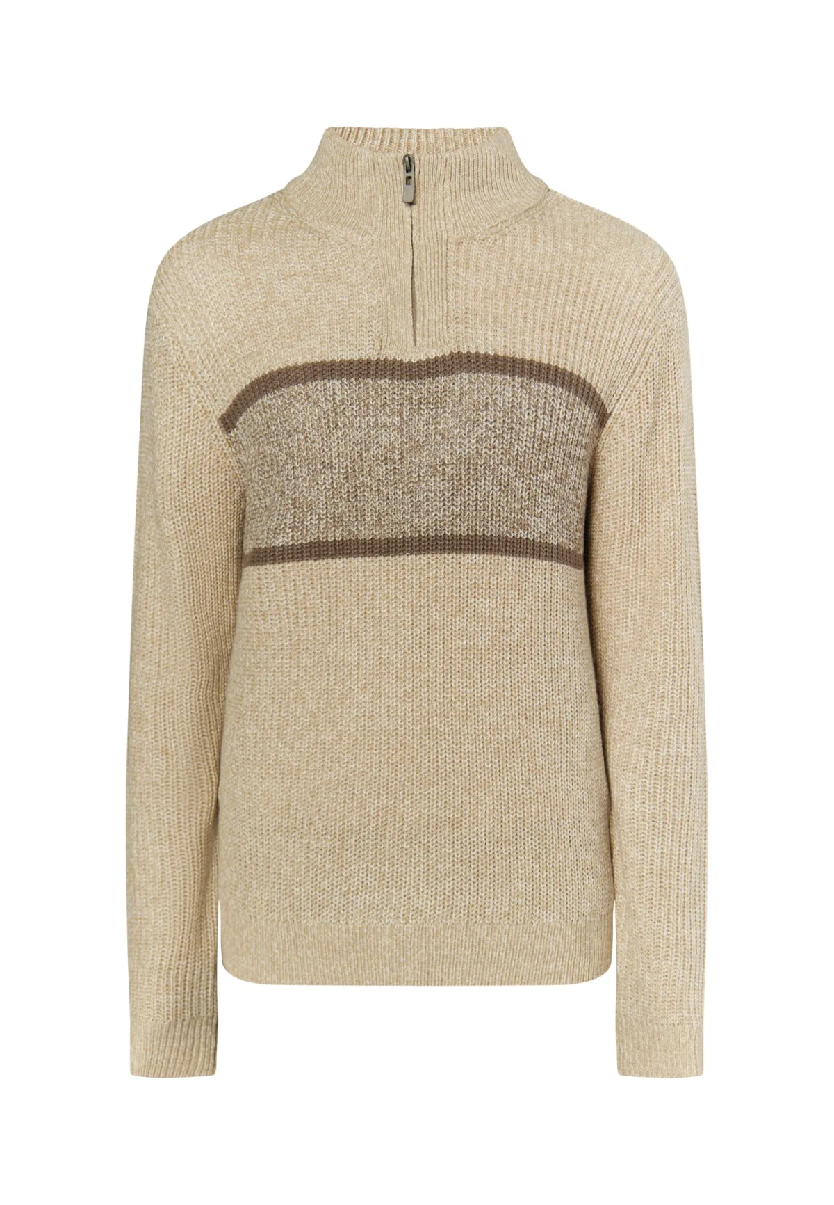 Perfect voor het koude seizoen: deze comfortabele gebreide trui met opstaande kraag en ritssluiting van het Mo-label is gebreid van een zacht, grof garen en voorzien van een brede streep. De vormvaste ribgebreide manchetten ronden het model succesvol af. Jumper