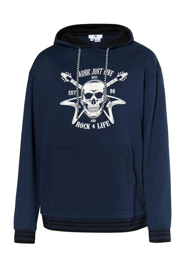 De stijlvolle hoodie van Mo is gemaakt van zacht katoen, heeft een capuchon met tweekleurig trekkoord en een gezellige kangoeroezak. De contrasterende strepen op de manchetten en de rockprint maken de trui tot een cool statement piece. Hoodie