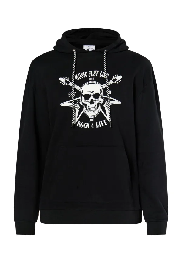 De stijlvolle hoodie van Mo is gemaakt van zacht katoen, heeft een capuchon met tweekleurig trekkoord en een gezellige kangoeroezak. De contrasterende strepen op de manchetten en de rockprint maken de trui tot een cool statement piece. Hoodie