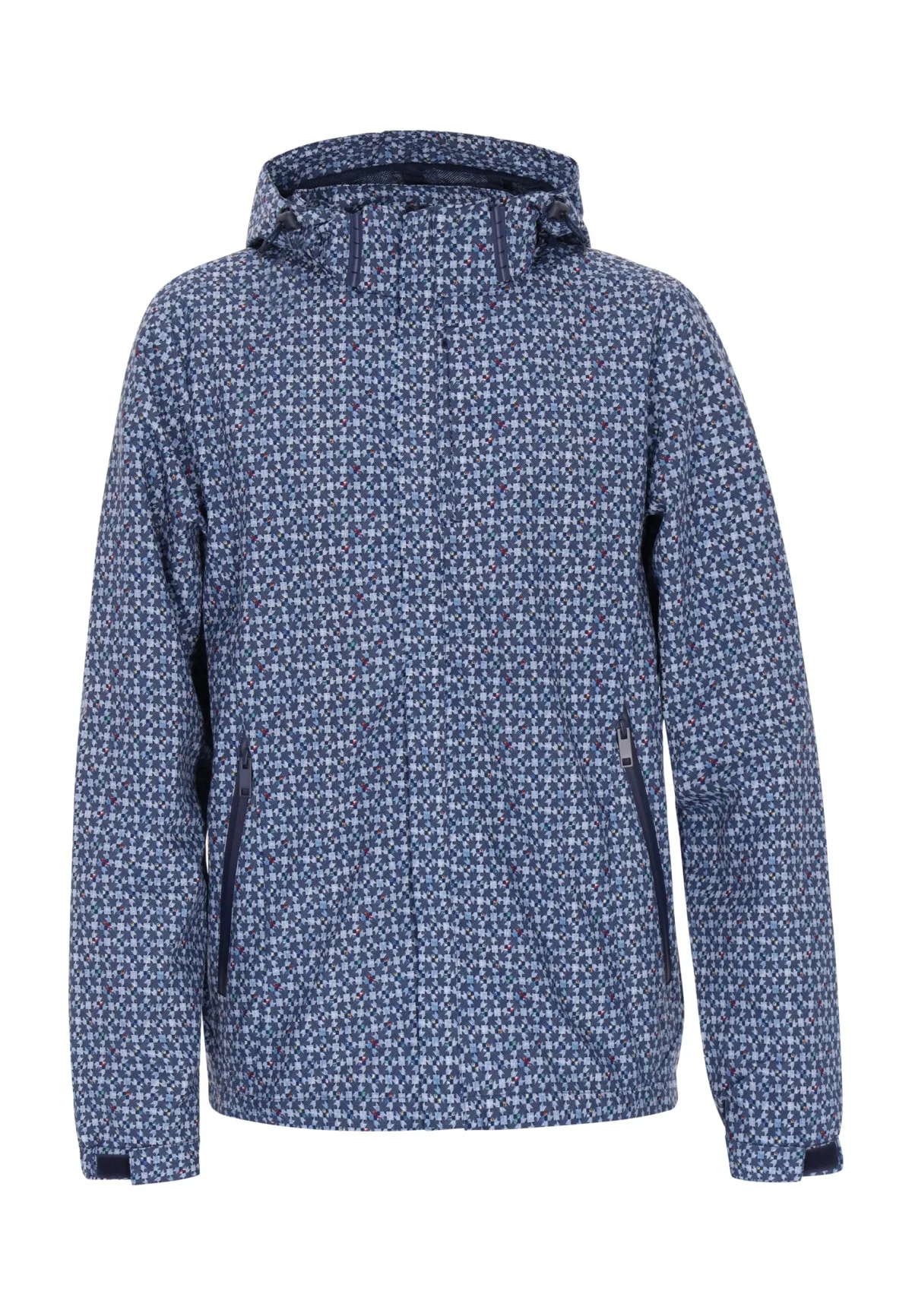 Dit jack met capuchon met patroon is perfect voor vrijetijds- en buitenactiviteiten bij koeler weer en heeft een volledige ritssluiting en een hoge kraag. De verstelbare capuchon met trekkoord en elastische manchetten zorgen voor een perfecte pasvorm, terwijl de twee zakken met ritssluiting op taillehoogte handige opbergmogelijkheden bieden. Met een rechte zoom en verstelbare pasvorm is deze jas ontworpen om je comfortabel en stijlvol mee te nemen. Jas