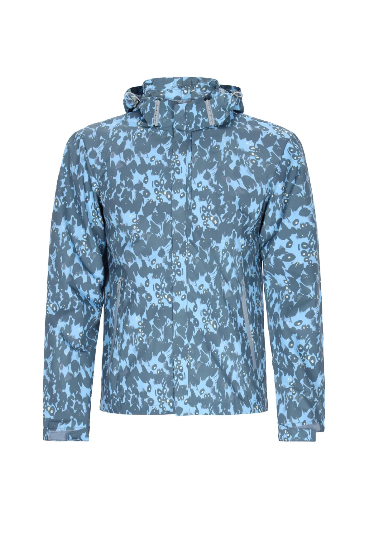 Dit jack met capuchon is ontworpen voor stijl en functionaliteit en heeft een opvallend patroon. De doorlopende ritssluiting aan de voorkant en de hoge kraag vloeien naadloos over in de verstelbare capuchon met trekkoord. Elastische manchetten aan de lange mouwen en een aansluitende zoom zorgen voor een comfortabele pasvorm. Jas