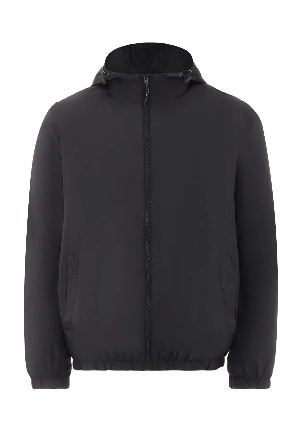 Deze jas heeft een slank silhouet met een doorlopende ritssluiting aan de voorkant en een hoge kraag die een praktische capuchon verbergt. Verstelbare trekkoorden aan de kraag zorgen ervoor dat de capuchon perfect aansluit. Het strakke ontwerp omvat naadloze zijzakken en elastische manchetten en zoom voor extra comfort en bescherming tegen de elementen. Jas