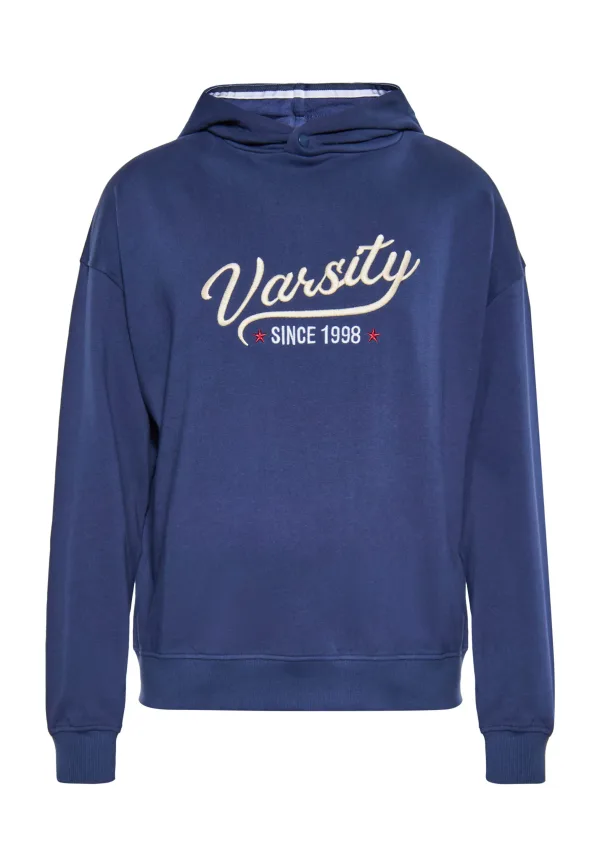 Geef je casual garderobe een boost met deze sportieve hoodie met lange mouwen en een opvallende grafische print op de voorkant. Dit sweatshirt is gemaakt van badstof en heeft geribde manchetten en tailleband voor een perfecte pasvorm. De vaste capuchon met knoopsluiting voegt een vleugje veelzijdigheid toe aan dit op school geïnspireerde kledingstuk, perfect voor zowel vrijetijds- als sportkleding. Sweatshirt