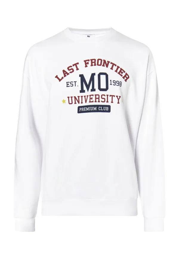 Een opvallende print op de voorkant en het Mo-logo midden op de borst. Dit casual sweatshirt verwijst met zijn print naar de populaire college-trend. De trui is gemaakt van puur katoen en heeft een klassieke vorm, een ronde hals en stevige geribde manchetten. Sweatshirt