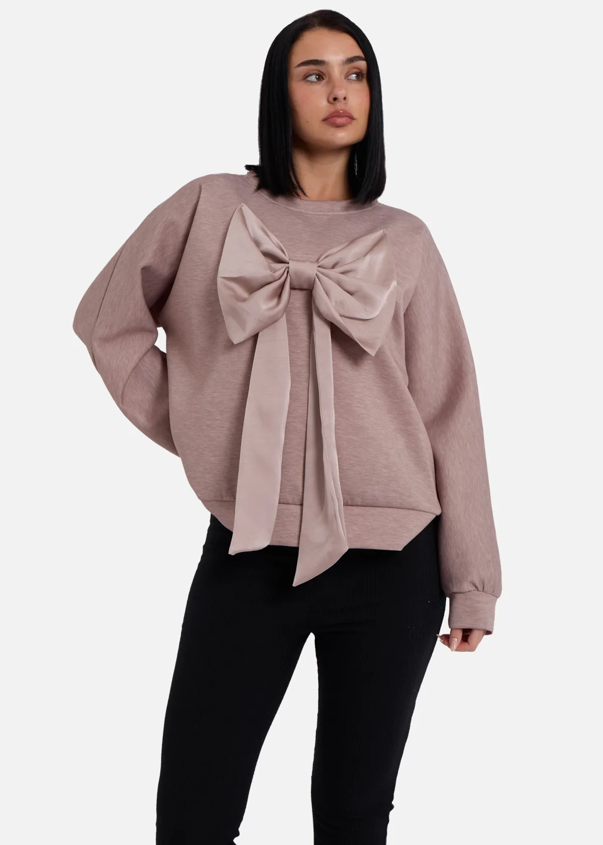 Specificaties: Mocha oversized trui met strik aan de voorkant
