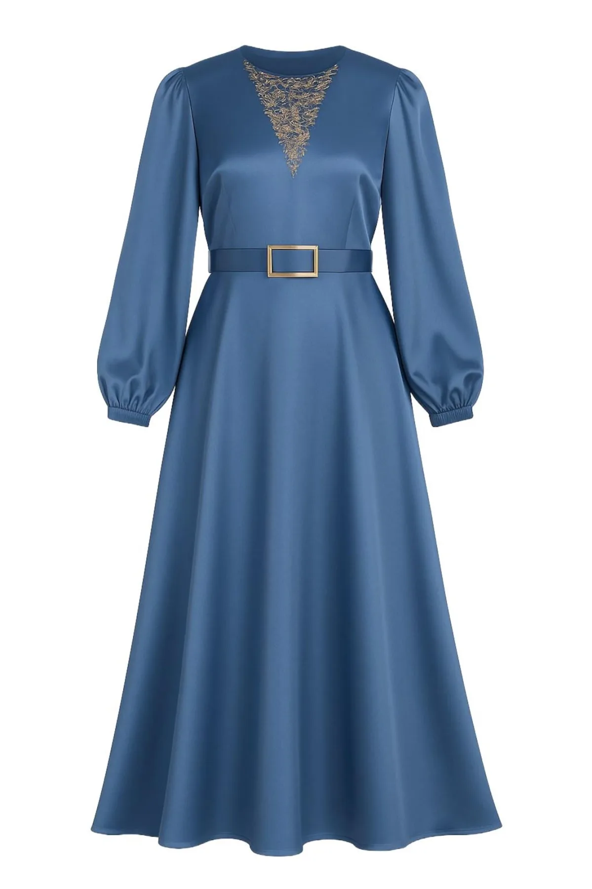 Design: Gevoerde zoom/rand, A-lijn, Figuurnaden, Pofmouwen; Materiaal: Satijn; Halstype: Ronde hals; Motief: Effen; Details: Sierstenen, Gedrapeerd; Extra's: Met halfedelstenen, Op staal naden, Gladde stof; Lengte: Lang/maxi; Snit: Uitlopend; Pasvorm: Normale pasvorm; Armlengte: Lange mouw
