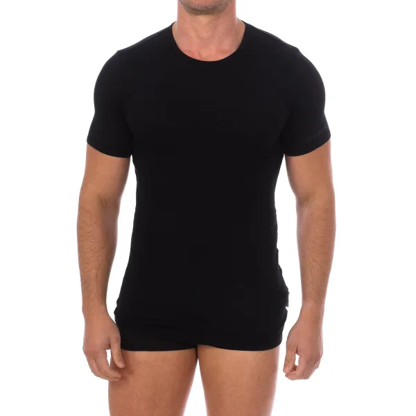Bikkembergs T-shirt met korte mouwen. Ronde hals met geribde afwerking. Merklogo op de mouw. Comfortabele en ademende stof. Naden in toon zichtbaar. Samenstelling: 95% viscose, 5% elastaan Onderhoud: Wassen op maximaal 30º. -Geen bleekmiddel gebruiken. -Niet chemisch reinigen. -Gebruik strijkijzer toegestaan.