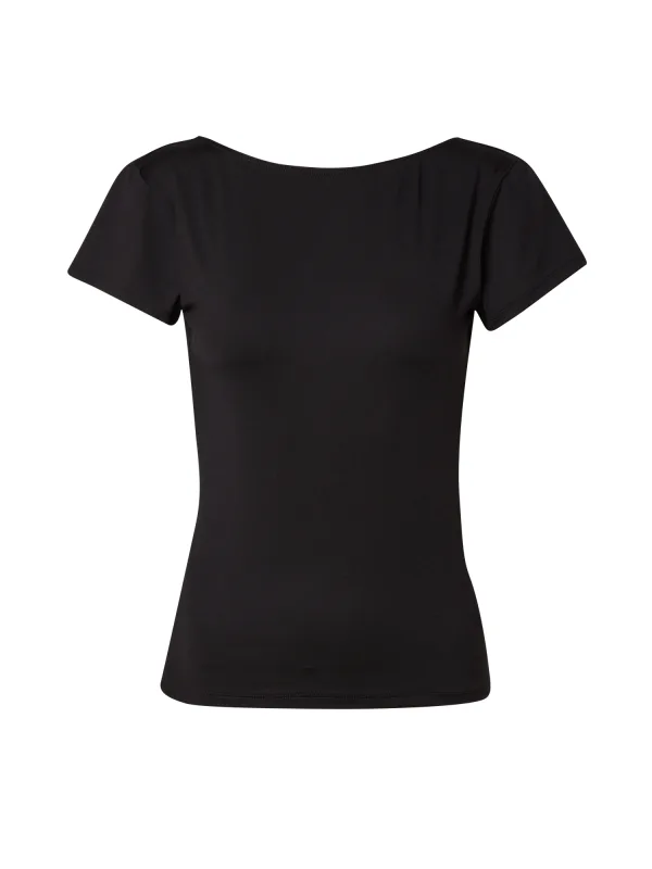 Blouse type: Blouseshirt; Design: Gevoerde zoom/rand, Rechte zoom; Materiaal: Gerecycled materiaal; Motief: Effen; Kraag: Zonder kraag; Details: Backless; Extra's: Op staal naden, Gladde stof; Pasvorm: Slanke pasvorm; Armlengte: Kwartmouw; Lengte: Normale lengte