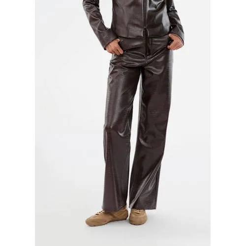 Modstrm imitatieleren wide leg regularwaist broek bruin