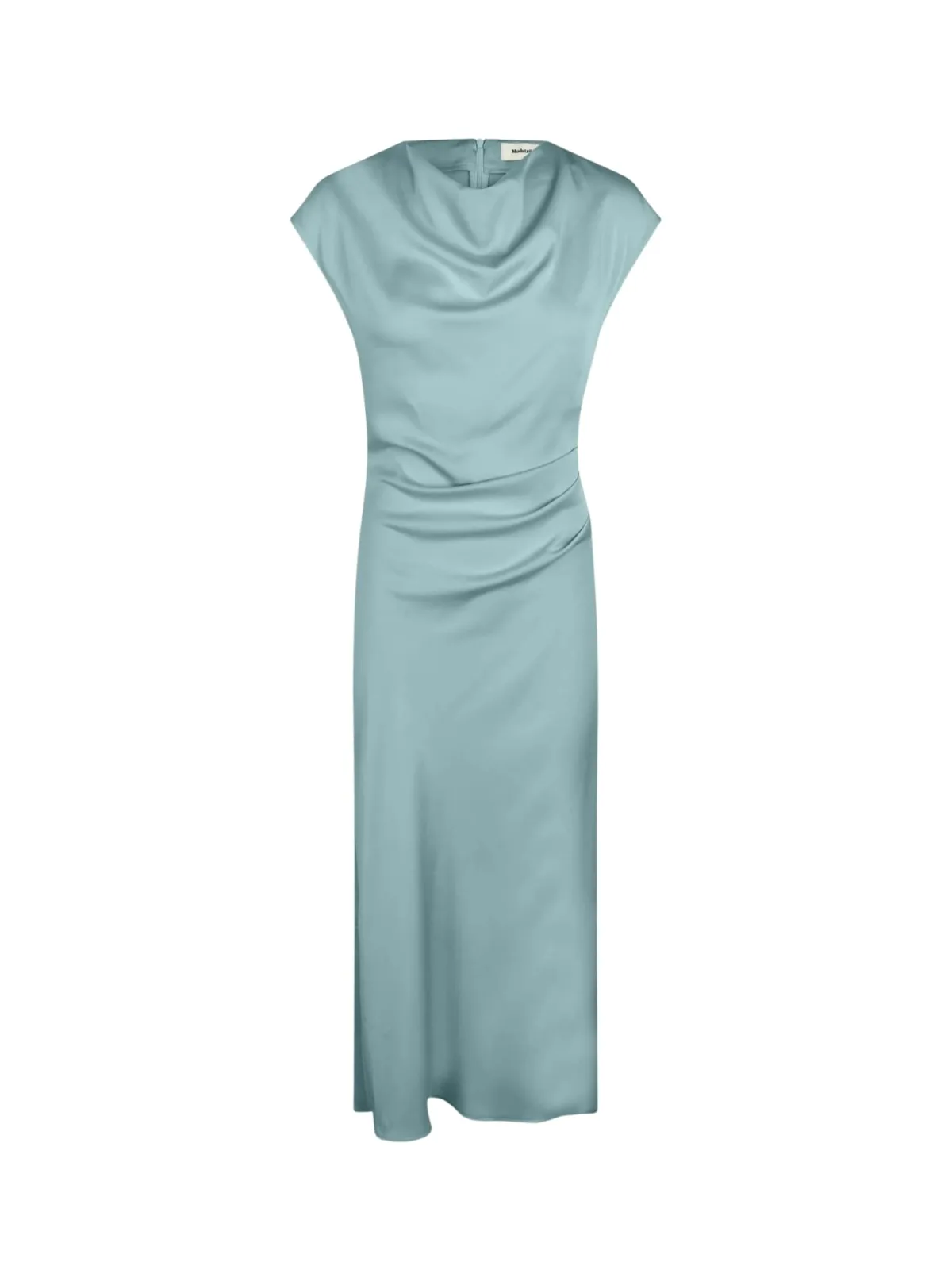 Voor een feestelijke avond waar je moeiteloos verzorgd voor de dag wilt komen, is deze Modström Tailormd jurk een stijlvolle keuze. De middel-lange jurk valt rond de knie en heeft een soepel silhouet dat mooi met je meebeweegt. Door de subtiele plooien en de verfijnde studio-uitstraling past dit ontwerp perfect bij zomerse gelegenheden.Verfijnde details voor een feestelijke look Middel-lange jurk in midi lengte, ideaal voor feestelijke momenten in de zomer Watervalhals die zacht valt en het decolleté elegant omlijst Kort kapmouwtje dat de schouders net bedekt voor een vrouwelijke uitstraling Effen kleur, gemakkelijk te combineren met sieraden en hakken Plooi-details die zorgen voor een mooie, flatterende valling Soepel materiaal met 4% elastane voor lichte stretch en extra draaggemak Halve rits aan de achterkant voor gemakkelijk aan- en uittrekken Ontworpen zonder zakken voor een strak en clean silhouetVoor zomerse feestavondenDeze jurk komt het best tot zijn recht tijdens feestelijke gelegenheden, van een diner tot een zomerse party. Met een paar sandalen met hak en een compacte clutch creëer je eenvoudig een verzorgde look. Door de middel-lange lengte voel je je vrij om te bewegen, terwijl de watervalhals en plooien voor een elegante uitstraling zorgen.Modström studio collectieModström staat bekend om moderne, draagbare mode met een cleane belijning en aandacht voor details. De studio collectie richt zich op items die net wat meer uitstraling hebben, zonder ingewikkeld te worden. Deze jurk past daar naadloos in: eigentijds, doordacht en gemaakt om je zelfverzekerd te laten voelen tijdens speciale momenten.Een doordachte keuze als je zoekt naar een feestjurk die comfortabel zit en er tegelijk verzorgd uitziet.