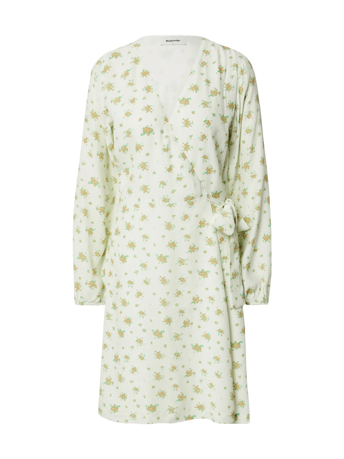 Design: Gevoerde zoom/rand, Figuurnaden, Elastische taille/zoom, Diepe snit/decolleté, Om te knopen/binden; Materiaal: Viscose; Halstype: V-hals; Motief: Bloemenprint; Details: Gedrapeerd, Wikkel design; Extra's: All-over patroon, Gladde stof; Lengte: Knielengte; Pasvorm: Normale pasvorm; Armlengte: Lange mouw