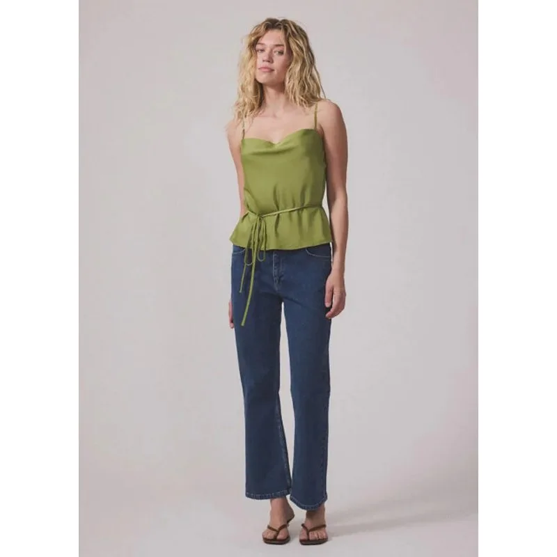 Voeg een vleugje verfijnde elegantie toe aan je garderobe met de Modström NarcissaMD strap top in glanzend satijn. Deze losvallende, groene top heeft verstelbare, dunne bandjes en een subtiele watervalhals die zorgt voor een vrouwelijke en flatterende look. In de taille zit een delicate strikband die je silhouet mooi accentueert. Gemaakt van een zachte satijnmix met een lichte stretch, voelt deze top luxe aan en draagt heerlijk comfortabel. Perfect voor zowel een zomerse dag als een chique avond uit — combineer de top met een pantalon of rok voor een stijlvolle outfit. Product details: Merk: Modström Modelnaam: NarcissaMD Kleur: Groen Materiaal: 96% polyester, 4% elastaan Verstelbare spaghetti bandjes Watervaldetail aan de voorkant Striksluiting in de taille Losvallende pasvorm Satijnen finish voor een luxe look