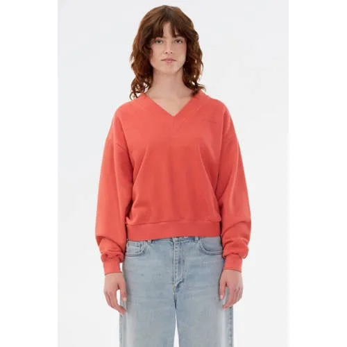 Voeg kleur toe aan je garderobe met de Modström ds sweater in donker oranje. Deze korte damestrui heeft een moderne, iets boxy pasvorm die goed past bij een hoge jeans, rok of pantalon. De diepe V-hals geeft een open halslijn, terwijl de soepele katoenen stof prettig aanvoelt op de huid. Ideaal voor het tussenseizoen, wanneer je een laagje extra wilt zonder dat het te warm wordt.Korte sweater met V-hals Gemaakt van 100 procent katoen, wat zacht aanvoelt en prettig draagt in het voorjaar Korte lengte, passend bij broeken en rokken met een hoge taille Diepe V-hals voor een open halslijn en luchtige look Lange, rechte mouwen voor een relaxed silhouet Effen donker oranje kleur als rustige basis met een duidelijke kleuraccent Zonder zakken voor een strakke, cleane uitstralingStyling voor alledaagse outfitsDeze sweater uit de Studio collectie is geschikt voor alledaags gebruik. Draag de trui met een straight jeans en sneakers voor een casual dag, of combineer met een midi-rok en laarsjes voor een meer geklede look. De korte lengte maakt het eenvoudig om je silhouet te accentueren zonder te hoeven instoppen.Modström: Scandinavische eenvoudModström staat voor ontwerpen met een heldere, Scandinavische uitstraling. Het merk focust op draagbare mode met doordachte details en strakke lijnen. Zo bouw je stap voor stap aan een garderobe met stukken die je makkelijk combineert.Een moderne sweater die je garderobe aanvult met een rustige basis en een opvallende kleur.