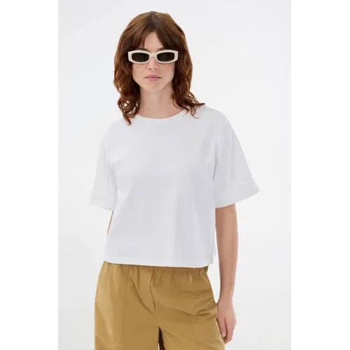 Een helder basic shirt dat met alles mee kan, dat is dit Modström dames T-shirt. De frisse witte kleur en de rustige, effen uitvoering maken het een fijne basis voor elke dag. Het T-shirt heeft een ronde hals en korte mouwen, waardoor het het hele jaar door goed te dragen is. Gemaakt van 100% katoen voelt de stof soepel en zacht aan op de huid.Witte basic met doordachte details Effen wit T-shirt, makkelijk te combineren met je hele garderobe Gemaakt van 100% katoen voor een ademend en prettig draaggevoel Ronde hals die netjes langs de halslijn valt Korte, rechte mouwen voor een tijdloze uitstraling Geen zakken of extra details voor een rustige, minimalistische look Onderdeel van de Studio collectie, met focus op moderne basicsElke dag anders te stylenDit T-shirt past gemakkelijk in je dagelijkse routine. Draag het losjes op een wijde jeans met sneakers voor een relaxte dag, of stop het in een midi-rok met een blazer voor een meer geklede look. Ook onder een vest of opengewerkt truitje blijft de ronde hals mooi in vorm.Scandinavische eenvoud van ModströmModström staat bekend om zijn moderne, toegankelijke stijl met een Scandinavische inslag. De collecties draaien om draagbare stukken die onderling goed te combineren zijn en lang mee kunnen in je kast. Met dit T-shirt kies je voor een betrouwbare basic die past bij veel verschillende outfits en momenten.Een rustige, katoenen basis die je garderobe overzichtelijk en compleet maakt.