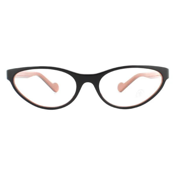 Moncler bril ML5064 005 Zwarte en roze vrouwen zijn gemaakt in Italië en hebben een plastic frame met een kattenoogvorm en zijn ontworpen voor vrouwen