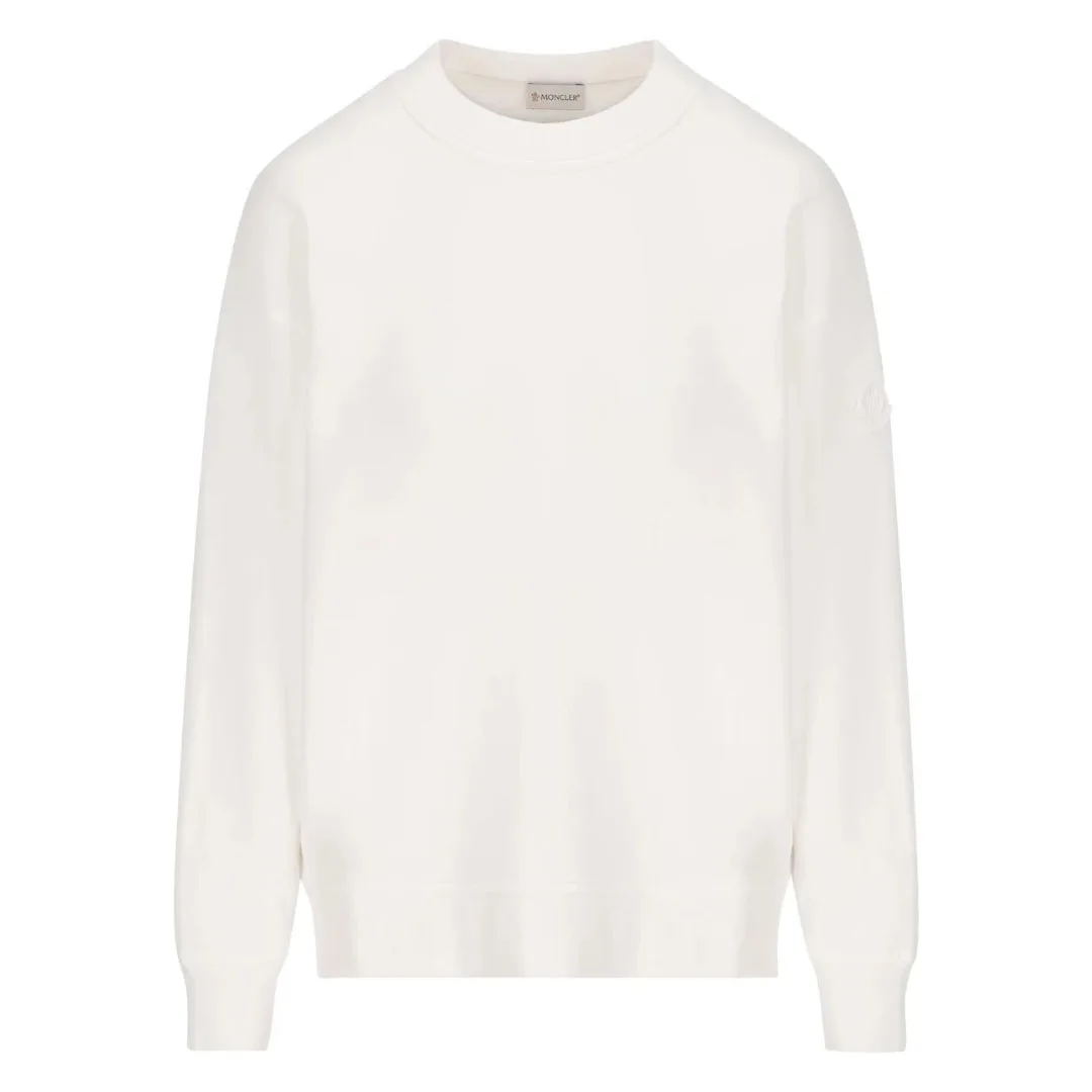 Moncler gedetailleerd logo op de achterkant van het witte sweatshirt