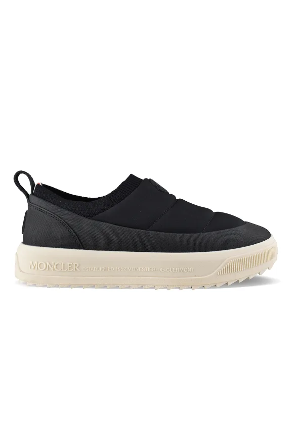 Slip On Altive-trainers Moncler van zwart nylon.Zwart Moncler logopatch op de voorkant. Zwarte Moncler logopatch op de hiel.Gewatteerde afwerking.Zwarte achterkant tong.Pull-on ontwerp.Dikke witte rubberen zool.