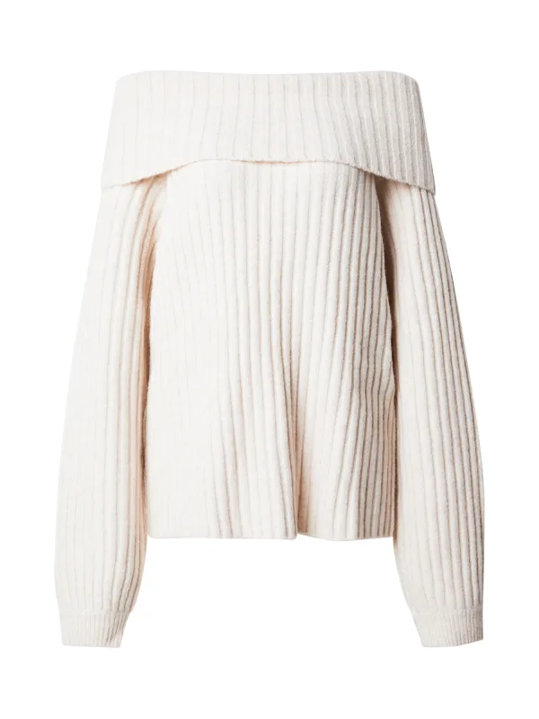 Design: Geribd ceintuurtje, Geribbeld gebreid, Strapless/off-shoulder; Materiaal: Knitwear; Halstype: Carmen hals; Motief: Effen; Extra's: Fully fashioned, Met textuur; Pasvorm: Losse pasvorm; Armlengte: Lange mouw; Lengte: Normale lengte
