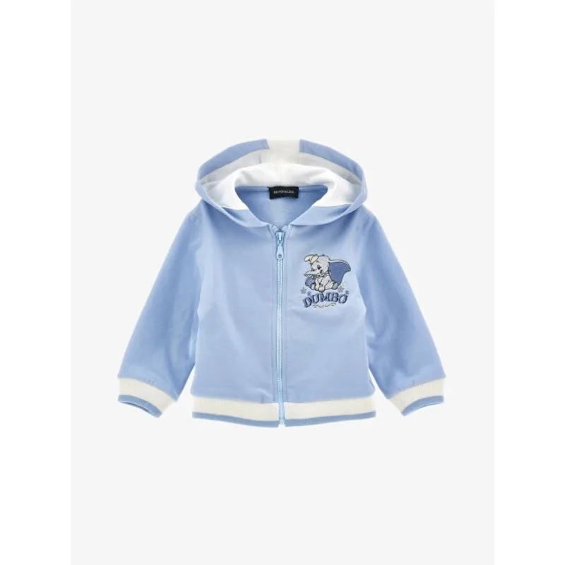 Het Monnalisa Vest in Celeste Panna uit de Dombo collectie heeft een ritssluiting en dombo geborduurd op de borst. Combineer het vest met de bijpassende Monnalisa joggingbroek.