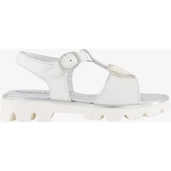 Ontdek de verfijning van deze MonnaLisa sandalen, perfect voor de kleine fashionista. Het zachte kalfsleer omhult voetjes met luxe, terwijl de schitterende hartapplicatie met parels en kristallen elke stap laat stralen. De elegante gespsluiting zorgt voor een perfecte pasvorm, en de leren binnenzool met merklogo biedt ultiem comfort. Deze sandalen zijn meer dan een mode-item; ze zijn een belofte van kwaliteit en stijl. Ideaal voor speciale gelegenheden of om dagelijks een vleugje glamour toe te voegen. MONNALISA KIDS 8CE006 ZOMER 2025