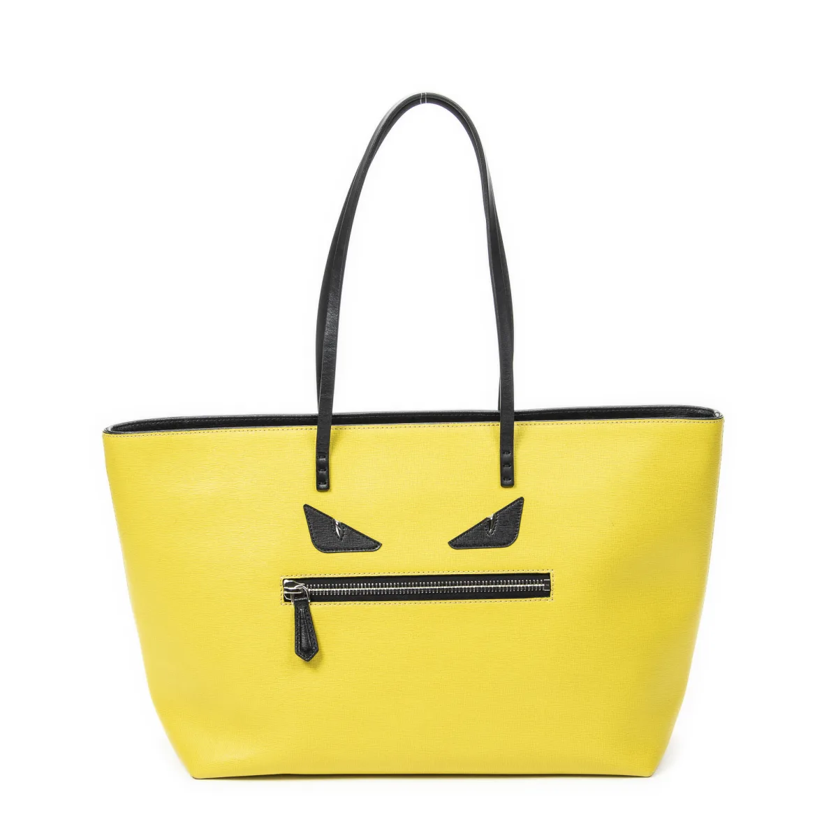 Fendi Tassen Monster Eyes Roll Zip Tote Schoudertas in de Geel/Zwart Kalfleer in de Silver hardware. Het product is in In Uitstekende Staat (A). Afmetingen: 34x26.5x15 cm Inclusief accessoires: None Opmerkingen over de buitenkant: Beschadigde onderste hoeken BrandCo Paris vindt zeldzame artikelen in de beste staat voor ongelooflijke prijzen. Het is de moeite waard om geduldig te zijn! Koop met vertrouwen: alle artikelen van BrandCo Paris worden zorgvuldig geselecteerd en geverifieerd door ons team van experts. Alle artikelen worden geleverd met een certificaat van echtheid en verpakt door BrandCo Paris. Classificatietabel voor de conditie van het artikel: N (als nieuw) AA (perfecte staat) A (uitstekende staat) AB (zeer goede staat) B (goede/redelijke staat)