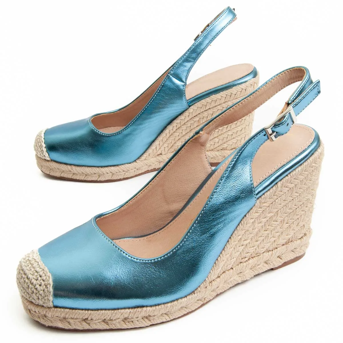 Espadrille-wedge voor dames. Gevoerde zool van natuurlijk leer. Comfortabele pasvorm. Antislipzool. Versterkte stiksels. Geproduceerd door andere merken voor ons merk. Bij benadering afmetingen: 10 cm hak en 2 cm plateau.