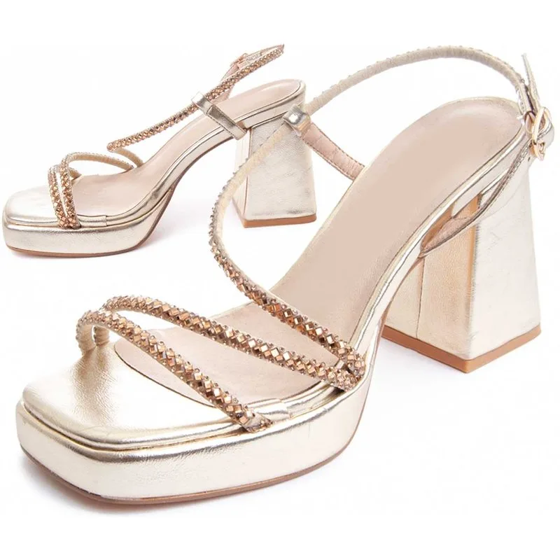 Dames hoge hak sandaal. Gevoerde binnenzool van natuurlijk leer. Comfortabele pasvorm. Antislip zool. Versterkte stiksels. Gemaakt door andere merken voor ons merk. Geschatte afmetingen: 10 cm hak en 2 cm platform.