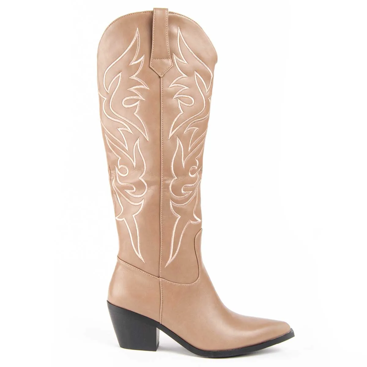 Cowboylaarzen voor dames. Comfortabele pasvorm. Gevoerde binnenzool van natuurlijk leer. Gemaakt door andere merken voor ons merk. Afmetingen: 6 cm hoge hak, 43 cm hoge schacht en 12 cm brede schacht.