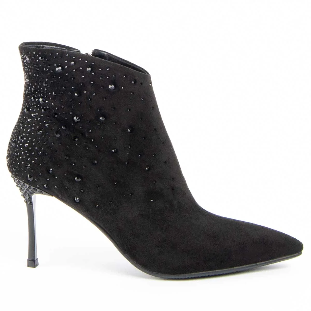 Dames enkellaars met hak. Comfortabele pasvorm. Gevoerde binnenzool van natuurlijk leer. Gemaakt door andere merken voor ons merk. Afmetingen: 6 cm hak, 16 cm hoog en 10 cm breed.