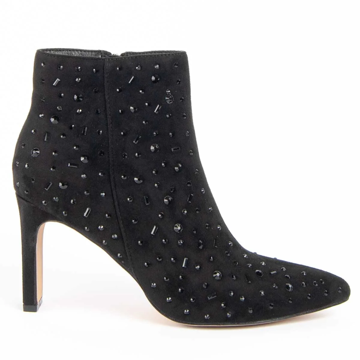 Dames enkellaars met hak. Comfortabele pasvorm. Gevoerde binnenzool van natuurlijk leer. Gemaakt door andere merken voor ons merk. Afmetingen: 8 cm hak, 16 cm hoog en 10 cm breed.