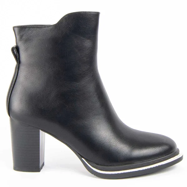 Dames enkellaars met hak. Comfortabele pasvorm. Gevoerde binnenzool van natuurlijk leer. Gemaakt door andere merken voor ons merk. Afmetingen: 8 cm hak, 2 cm plateau, 14 cm hoge hak en 10 cm brede hak.