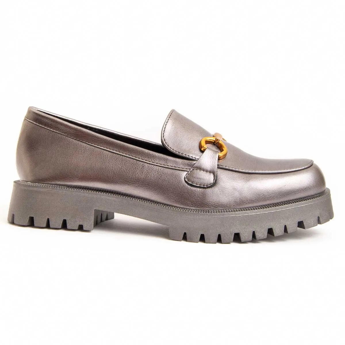 Platte mocassin voor dames. Comfortabele pasvorm. Gevoerde binnenzool van natuurlijk leer. Door andere merken voor ons merk gemaakt. Afmetingen bij benadering: 4 cm hak en 2 cm plateau.