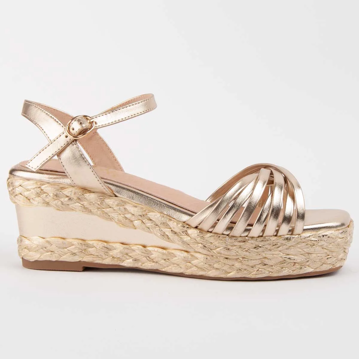 Espadrille wedges voor dames. 100% natuurlijke leren inlegzool. Comfortabele pasvorm. Gemaakt door andere merken voor ons merk. Ongeveer 7 cm hak en 3 cm platform