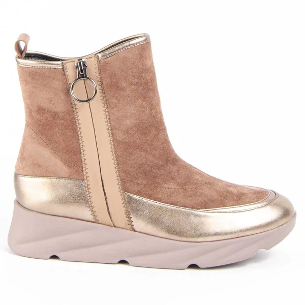 Casual sleehak enkellaarsjes voor dames. Comfortabele pasvorm. Gevoerde binnenzool van natuurlijk leer. Geproduceerd door andere merken voor ons merk. Afmetingen bij benadering: 4 cm sleehak, 2 cm plateau, 14 cm hoog en 12 cm breed.