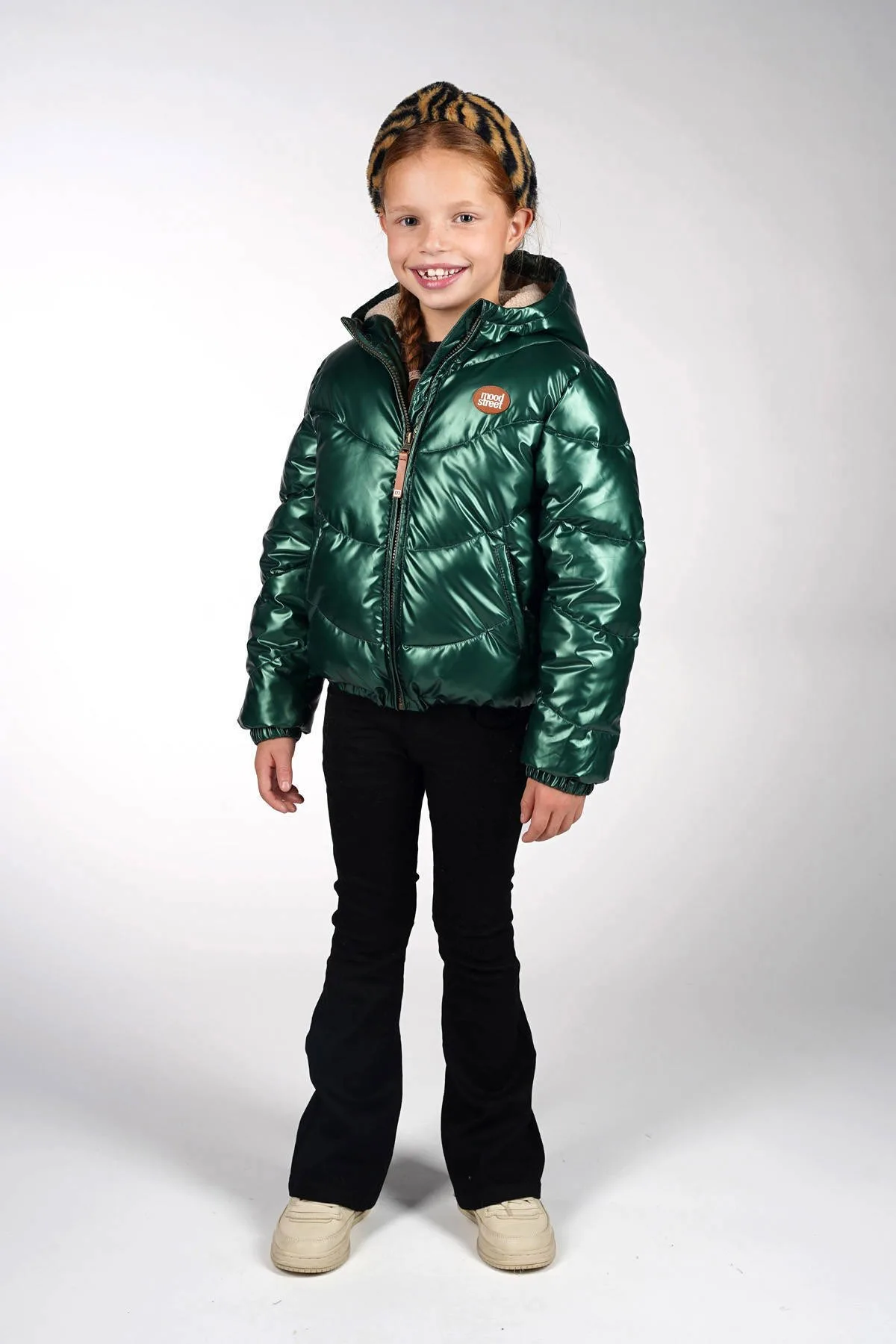 Deze Moodstreet jas heeft een capuchon en lange mouwen. De jas is gemaakt voor meisjes en heeft een ritssluiting. De winterjas heeft een glimmende kleur en zakken voor. Ideaal voor koude dagen.