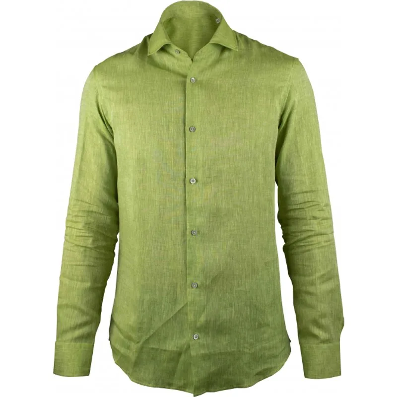 Groen overhemd Sorrento SA van Moorer-linnen.Glanzend aspect.Lange mouwen.Manchetten met knopen.Parelmoeren knoopsluiting aan de voorkant.Slim fit.Made in Italy.