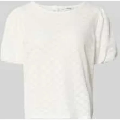 dames gebreid shirt van More & More;katoenmix;regular fit;ronde hals;pofmouwen;ruglengte bij maat 36: 55 cm