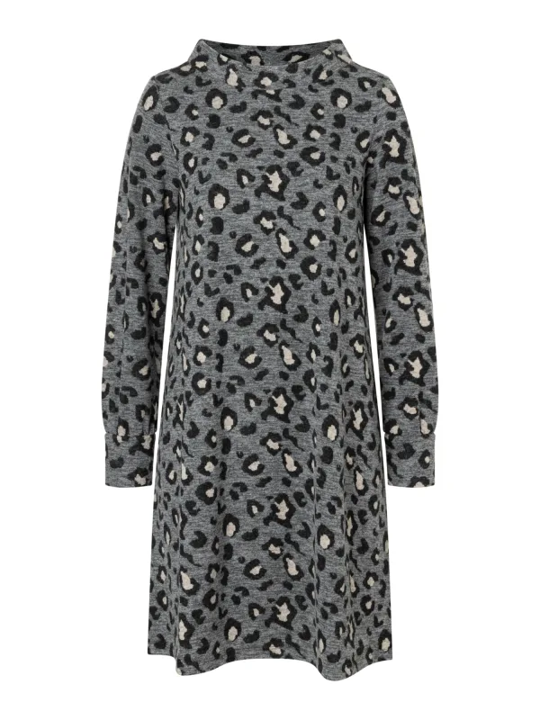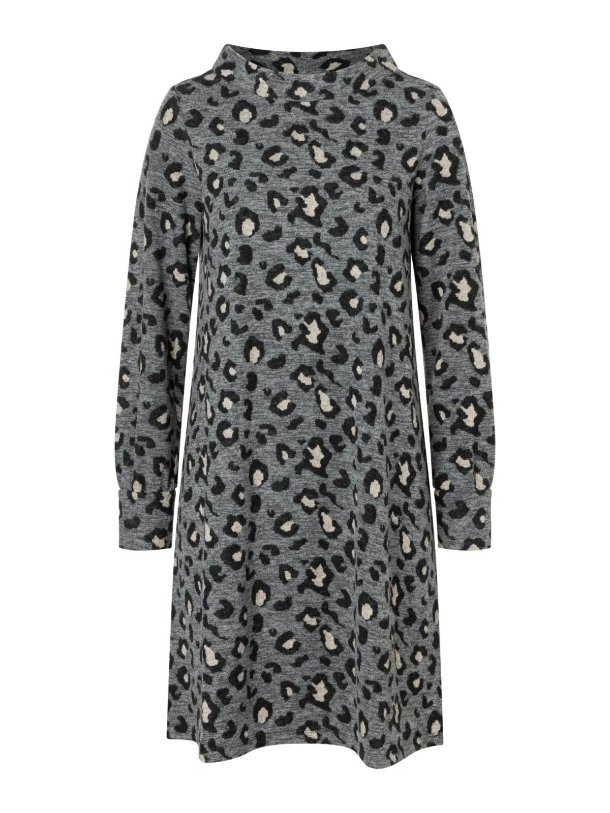 Design: Gevoerde zoom/rand, A-lijn; Materiaal: Jersey; Halstype: Opstaande kraag; Motief: Dierenprint; Extra's: All-over patroon, Voelt zacht aan; Lengte: Knielengte; Pasvorm: Normale pasvorm; Armlengte: Lange mouw