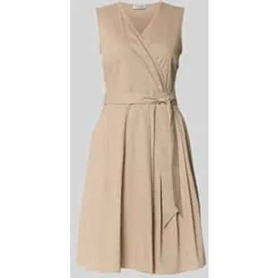 Dames jurk van More & More;elastische katoenmix;Getailleerde pasvorm;V-hals;wikkellook;Mouwloos design;Afneembare tailleband;ruglengte bij maat 36: 100 cm;borstwijdte bij maat 36: 35 cm