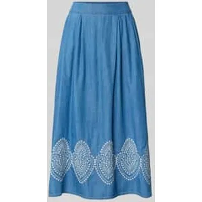 Dames midirok van More & More;mix van katoen en lyocell;A-lijn;Denim-look;Stitchings;Bandwijdte bij maat 36: 38 cm;totale lengte bij maat 36: 83 cm