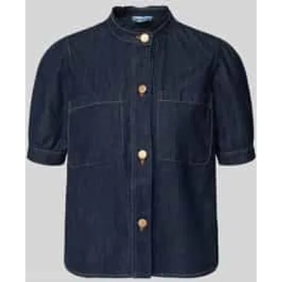 Dames jeansblouse van More & More;puur katoen;regular fit;Opstaande kraag;knoopsluiting;borstzakken;ruglengte bij maat 36: 52 cm;Mouwlengte bij maat 36: 25 cm