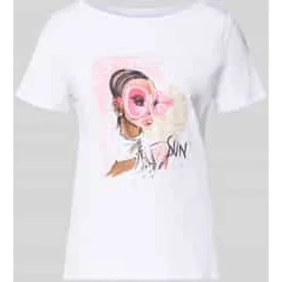 dames T-shirt van More & More;elastische katoenmix;regular fit;motiefprint;pailletten;boothals;ruglengte bij maat 36: 60 cm