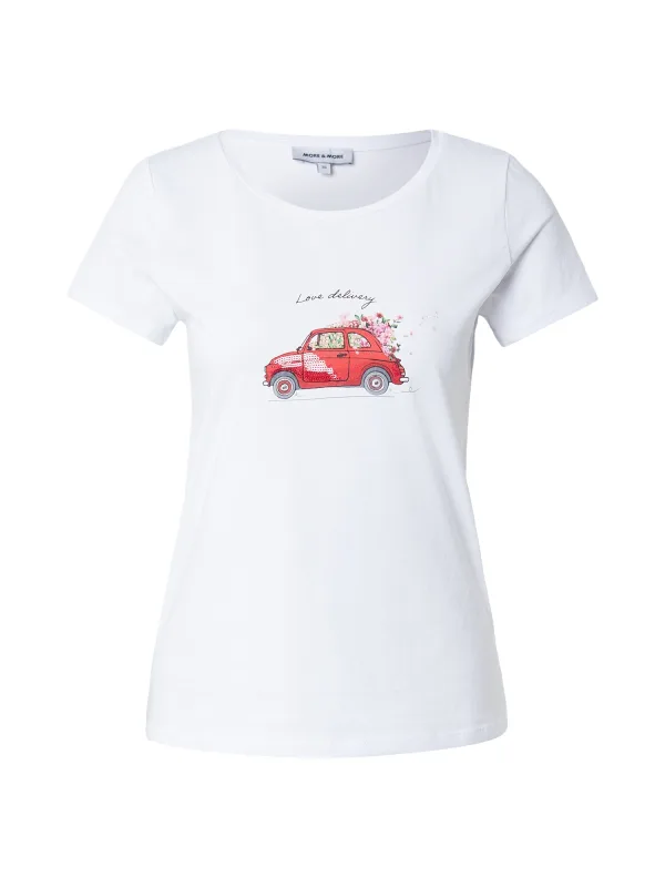 Dames T-shirt van More & More;Mix van katoen en elastaan;Regular Fit;Motiefprint;Pailletten;Ronde hals;Ruglengte bij maat 36: 60 cm