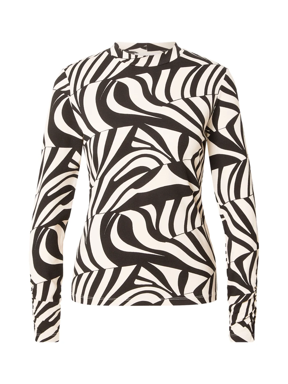 Design: Gevoerde zoom/rand, Rechte zoom; Materiaal: Jersey; Halstype: Opstaande kraag; Extra's: All-over patroon, Voelt zacht aan; Pasvorm: Slanke pasvorm; Armlengte: Lange mouw; Lengte: Normale lengte