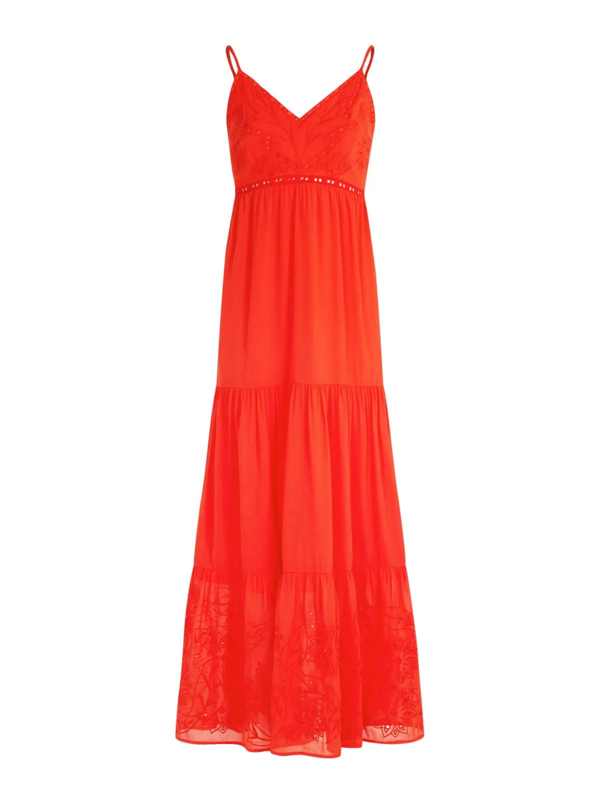 Design: Rechte zoom, Deelnaden; Halstype: V-hals; Motief: Effen; Soort bandjes: Spaghettibandjes; Details: Volant, Gedrapeerd, Mesh, Backless; Extra's: Op staal naden, Lichte stof; Lengte: Lang/maxi; Snit: Getailleerd; Pasvorm: Losse pasvorm; Armlengte: Mouwloos