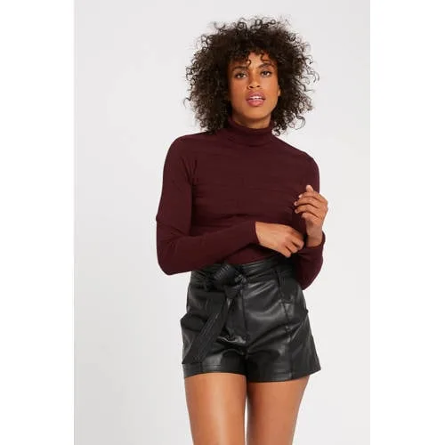Dames coltrui van Morgan de Toi, uitgevoerd in een fijn gebreide kwaliteit met structuur. Het model is voorzien van een colkraag, lange mouwen en geribde boorden.Het model is 175 cm en draagt maat S.